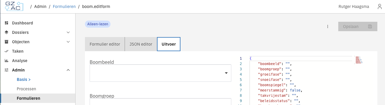 Het **beheren van formulieren** is verbeterd, met onder meer de meer de mogelijkheid om direct via de admin in de JSON te werken. Daarnaast wordt er een preview getoond van het formulier dat gebouwd wordt, zodat je direct kan testen met data.