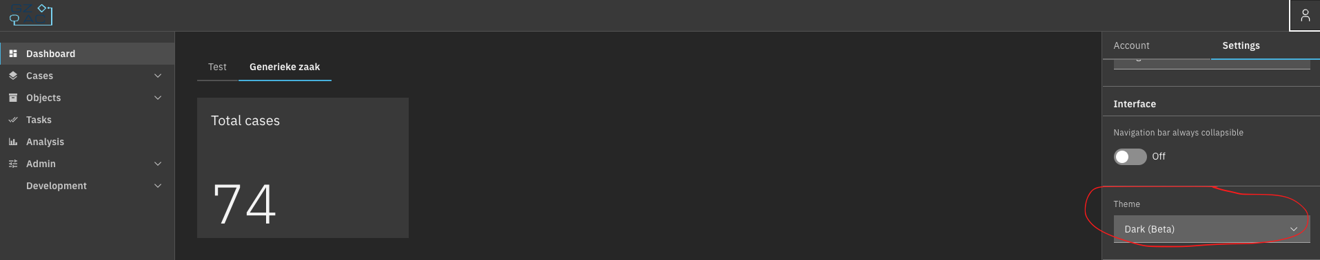 Er is een **dark mode** toegevoegd, na feedback over de 'witte' schermen bij intensief gebruik. Elke gebruiker kan deze instelling maken onder de persoonlijke settings.